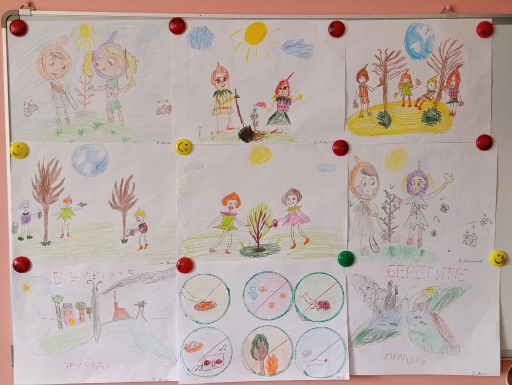 Конкурс рисунков «Наши друзья — Эколята». Дети отразили свое отношение к природе в творческих работах. На рисунках ребята изобразили сказочных защитников леса — Умницу, Шалуна, Тихоню и Елочку, а также сцены заботы о растениях и животных. Лучшие работы украсили выставку в холле детского сада.
