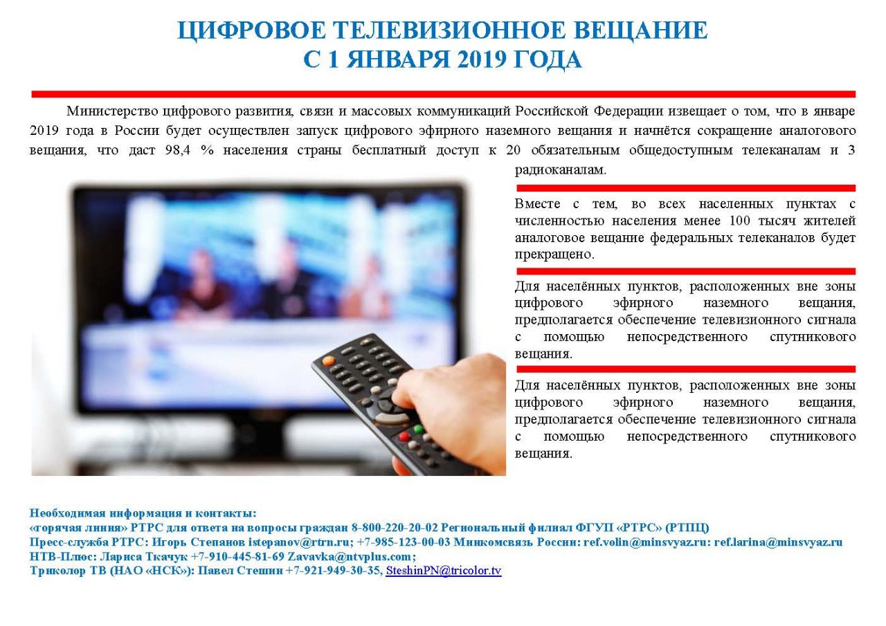 Изменения цифрового телевизионного вещания с 1 января 2019 года